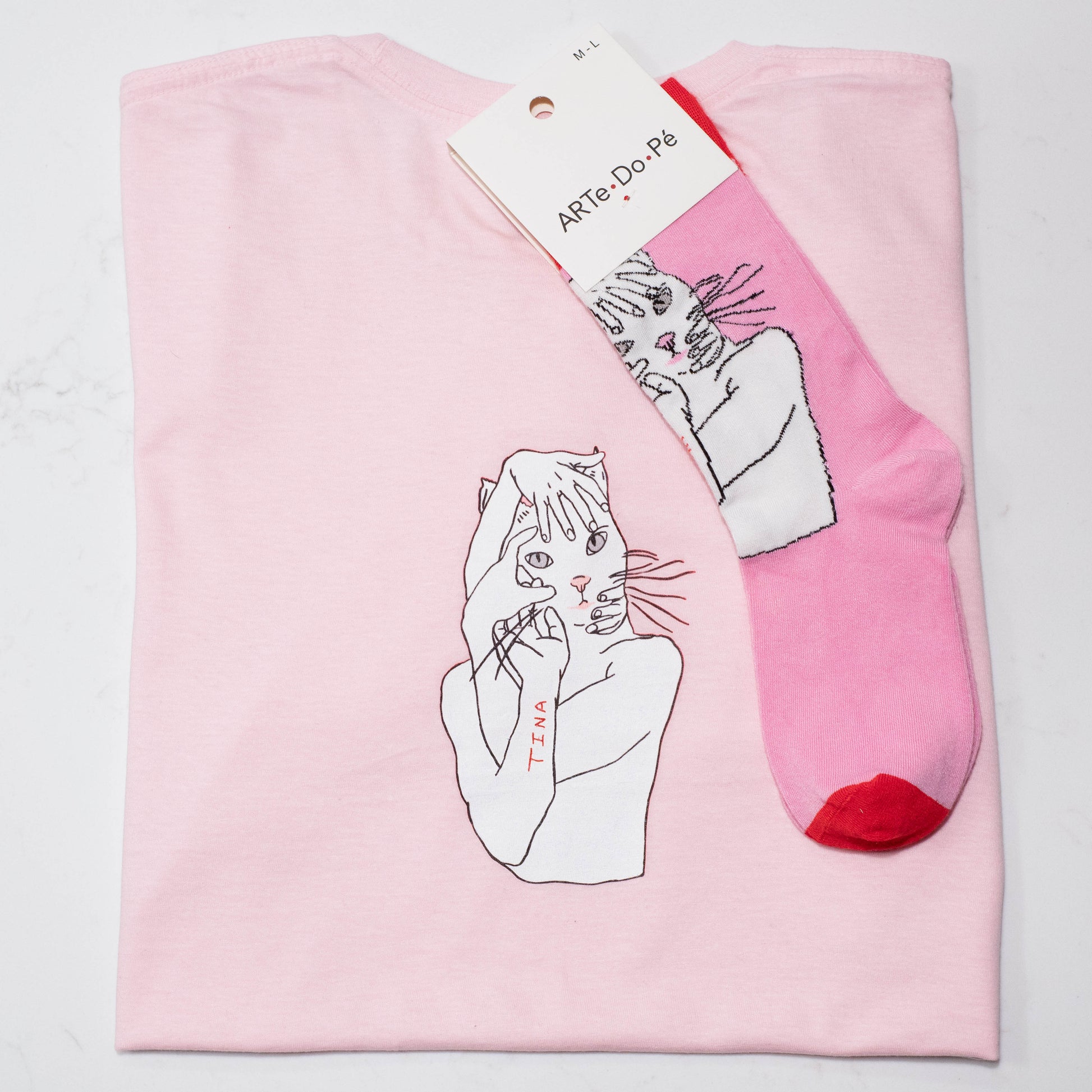 Show off your artistic sense with matching socks and t-shirt, designed by artist Lucia Znamirowski. Learn more about her work on her artist page here.